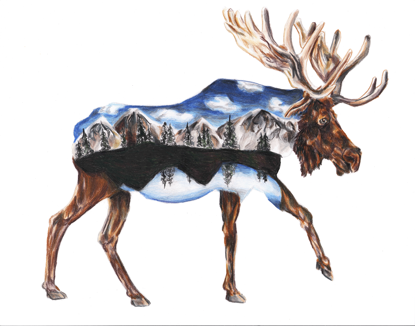 Moose of the Mountains 11×14″ Framed Colored Pencil Drawing 2024