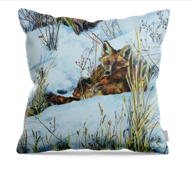 Fox in the Snow Throw Pillow 14×14″Pillow